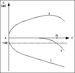 由于結(jié)構(gòu)和材料的因素,超五類雙絞線的衰減相當(dāng)于73-3同軸電纜的2倍,傳輸RGB信號(hào),一般不可超過(guò)20米,因此必須采取補(bǔ)償放大措施。超五類雙絞線的衰減特性呈二次曲線狀,隨著頻率的升高,衰減也增大。線路的這一衰減特性表現(xiàn)在圖象上是:一,圖象細(xì)節(jié)模糊。二,圖象有拖尾現(xiàn)象。普通放大器的在通帶內(nèi)提供的是一平直的特性,是不能起到有效的補(bǔ)償作用的。要有效的補(bǔ)償線路損耗,放大器的增益頻率特性在通帶內(nèi)必須與線路傳輸特性相反。圖8的曲線2是一個(gè)頻率補(bǔ)償放大器的特性曲線。曲線1和曲線2迭加,得到曲線3,即為補(bǔ)償放大后的頻率特性。fc為-3dB頻率點(diǎn),也即帶寬。