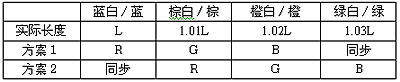 根據(jù)第2節(jié)分析,超五類雙絞線為了消除干擾和相互間的串?dāng)_,4對(duì)線采取不同的扭距,見(jiàn)表2。于是產(chǎn)生了一個(gè)新的問(wèn)題,即圖象分色問(wèn)題。這是由于4對(duì)線的扭距不同,各自的增長(zhǎng)系數(shù)也就不同,根據(jù)測(cè)試,超五類雙絞線藍(lán)、棕、橙、綠四對(duì)線的實(shí)際長(zhǎng)度差值依次為百分之一。如以綠線的長(zhǎng)度為基準(zhǔn)值L,則4對(duì)線的長(zhǎng)度見(jiàn)表2。