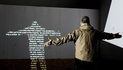 對于我們來說投影的運用比較局限,多數人停留在商務以及影音娛樂的范疇,但是如今投影逐漸會融入到一些創意作品亦或是藝術作品中,帶來極具沖擊力的視覺感受。投影機的強光或許會讓不小心路過的人尷尬不已,而這套交互式投影卻神奇地吸引著路人讓他們參與其中。這套系統由土耳其伊斯坦布爾的創意工作室設計,他們使用多重光效映射,首先在地面投影出一行行滾動的字母,當有人踏入此區域后,感應器會把被人影遮住的字母部分投射到旁邊的豎直墻面上,而形成由字母組成的真人輪廓。而且,無論做什么姿勢,墻上的“輪廓”都可以完全同步。