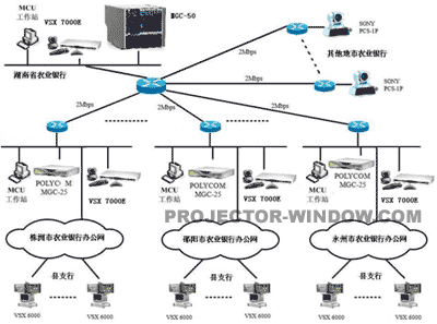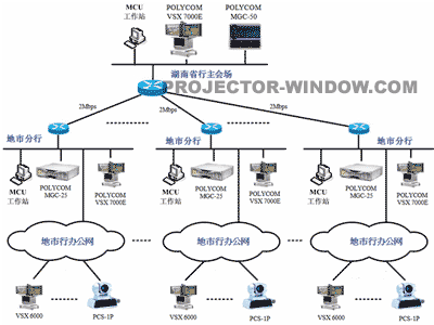 7000E則和地市行的MGC-25通訊,并且MGC-25負(fù)責(zé)其縣支行終端的接入,同時用MGC-50和MGC-25的端口級聯(lián),采用這種連接方式就可以實現(xiàn)從省行-地市行-縣支行的三級網(wǎng)視頻會議的召開。