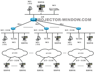 MCS4200系列多點控制單元,在下面各分公司根據各自下屬中支機構數量的不同分別配置總計17臺MCS4200系列MCU,組成一個分層級聯的全國性視頻會議網絡。