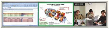 NovaVista 屏幕可以進行多屏橫向拼接,形成一個超大型投影畫面,并且同樣具有互動功能。多屏幕拼接方案具有兩項新特性: