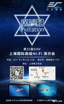 演示會(huì)將于2017年4月21日-23日在上海錦江飯店和上海新錦江大酒店隆重舉行。Elite