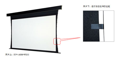 目前最為理想的投影幕是框架式投影幕(如本公司的PA型)。然而使用框架型投影幕具有安裝位置使前提,而且不能收納成為其最大不足。因此,最新開發(fā)的拉線電動(dòng)幕STP,在具有電動(dòng)幕收納功能的同時(shí),還具備和框架幕同等水平的平面性。