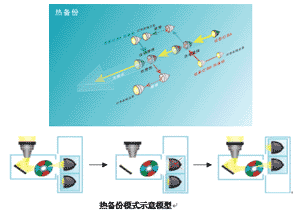 1、 熱備份模式:兩個燈泡都為工作狀態,其中一個燈泡負責投影機芯的光輸出任務,另一個燈泡在線冗余等待,在工作燈泡出現問題的時候可以立刻替換,最小縮短切換時間。