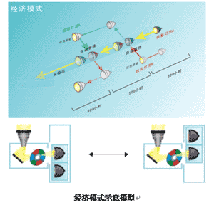 3、 經濟模式:兩只燈泡以設定的時間間隔交替使用(默認時間間隔為500小時),由于有序的進行燈泡的切換,避免某只燈泡長時間的不間斷工作,使燈泡可以得到有效休息間隙,延長燈泡工作時間。
