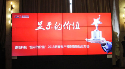繼德浩科技“顯示的價值”2013新春客戶答謝暨新品發(fā)布會在廣州拉開了序幕后,2013年1月9日,德浩2013新春客戶答謝暨新品發(fā)布會上海站在上海華納酒店再次圓滿召開。德浩科技、巴可公司、LG等相關(guān)領(lǐng)導(dǎo)、眾多系統(tǒng)集成商、用戶及媒體等500余人出席本次盛會。發(fā)布會以“顯示的價值”為主題,在精心布置的產(chǎn)品展示廳里,高端工程投影機、液晶及等離子拼接墻爭奇斗艷,顯示的魅力為我們帶來震撼的體驗。
