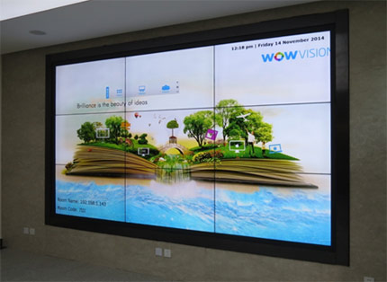 在項(xiàng)目實(shí)施中,客戶要求會(huì)議室大屏具備大畫(huà)面、拼縫小及可觸摸等功能,為此采用的是DET德浩獨(dú)家代理的LG55寸液晶拼接屏(LG55LV77A),使用3行3列的拼接模式進(jìn)行拼接安裝,并在此顯示屏上安裝了6點(diǎn)觸摸框,可進(jìn)行多人精確互動(dòng)觸摸,實(shí)現(xiàn)了客戶需求。