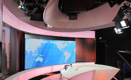 新演播室采用的DET等離子拼接大屏達(dá)到了國(guó)際先進(jìn)水平,拼縫在1mm內(nèi),具備超高亮度、超高對(duì)比度,圖像色彩還原度高,畫面自然逼真,使用性能穩(wěn)定,能滿足長(zhǎng)時(shí)間直播應(yīng)用。