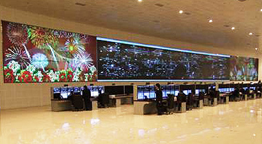 排控制臺(tái)。經(jīng)過(guò)仔細(xì)測(cè)量,中達(dá)電通選用了一套5行40列60英寸的DLP大屏幕拼接顯示系統(tǒng),成為截止目前為止亞洲地區(qū)最大規(guī)模的DLP拼接顯示屏。