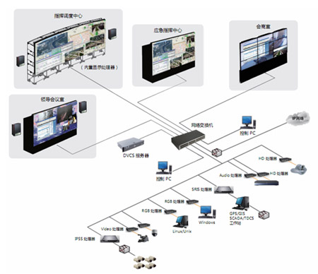 本項目的圖像控制處理部分采用DVCS分布式圖像控制系統(tǒng),采用全新的基于寬帶網(wǎng)絡(luò)的分布式架構(gòu),由分布式的信號輸入模塊、顯示輸出模塊和控制模塊組成,各模塊之間通過網(wǎng)絡(luò)數(shù)據(jù)交換機進行連接和信號傳輸,每一路信號均可獨立通道處理和遠距離傳輸,具有超強的分布式信號接入和多點分布式顯示能力,為各行業(yè)調(diào)度指揮中心大屏幕系統(tǒng)提供了業(yè)界領(lǐng)先的網(wǎng)絡(luò)化信息顯示及協(xié)同控制解決方案。同時中達電通提供的UHP雙燈和單燈DLP顯示單元,以及3×1LED光源、3×6