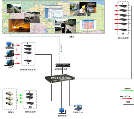 在該項目中,采用DVCS分布式圖像顯示控制系統作為圖像顯控軟件,正是基于其網絡化及分布式架構,可以很好的滿足通化鋼鐵集團安全生產調度指揮中心對分布不同區域的子系統的高度集成需求。同時,DVCS具有獨特的獨立信道高帶寬傳輸技術,整個系統除了更加穩定可靠,擴展性強外,更加有效的克服了傳統的視頻傳輸模式對距離的限制。