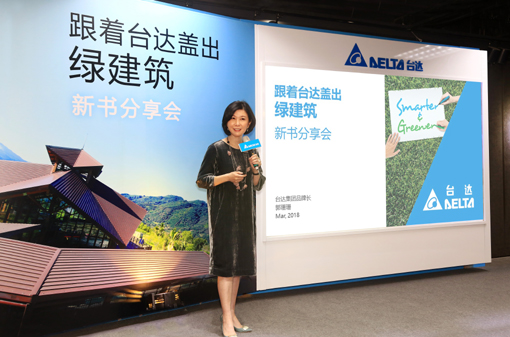臺達品牌長郭珊珊,介紹《跟著臺達蓋出綠建筑》書中,臺達蓋20多棟綠建筑的寶貴經驗,希望帶動更多人參與綠色行動,維護永續生存