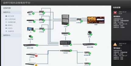 對(duì)于像網(wǎng)絡(luò)交換機(jī),服務(wù)器之類的設(shè)備,人們可以通過網(wǎng)管系統(tǒng),進(jìn)行直觀,可視化的設(shè)備管理,但AV設(shè)備諸如投影機(jī),矩陣等設(shè)備,雖然普遍使用于各種會(huì)場(chǎng),指揮中心等場(chǎng)所,但卻沒有一個(gè)可視化管理的直觀管理平臺(tái)。金橋公司就針對(duì)如何像網(wǎng)管系統(tǒng)一樣,直觀管理大量AV等設(shè)備這個(gè)問題,研發(fā)了GBMONITOR金橋可視化設(shè)備集中管理平臺(tái)。整個(gè)平臺(tái)采用SNMP標(biāo)準(zhǔn)網(wǎng)管協(xié)議,與各AV系統(tǒng)相關(guān)設(shè)備進(jìn)行連接,可提供統(tǒng)一的設(shè)備拓?fù)浒l(fā)現(xiàn)與動(dòng)態(tài)更新,實(shí)現(xiàn)全網(wǎng)集中監(jiān)測(cè),實(shí)時(shí)監(jiān)視網(wǎng)內(nèi)所有設(shè)備及線路的運(yùn)行狀態(tài)。并對(duì)不支持SNMP協(xié)議的設(shè)備提供兩種協(xié)議轉(zhuǎn)換器,一種為查看協(xié)議轉(zhuǎn)換器,一種為監(jiān)控協(xié)議轉(zhuǎn)換器。整個(gè)平臺(tái)具有設(shè)備管理、可視化監(jiān)控、預(yù)警報(bào)警等功能。 |