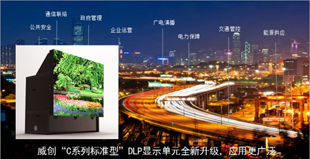 光學性能提升15%,價格維持不變,威創“C系列標準型”DLP顯示單元全新升級,這將有助于LED光源DLP產品更廣泛地推向市場,被越來越多的用戶所使用。近日,威創對其主流產品“C系列標準型”DLP顯示單元進行全面升級,除了具備原有的“全周期色彩、亮度智能立體免維護技術,多維色彩獨立調整,