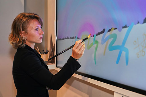 配合會議中的構思過程,書寫提供了四種選擇模式:薄筆、熒光筆、手指擦除器和橡皮擦模式,該功能允許用戶可模擬會議環境,就像他們在使用真正的記號筆、熒光筆和橡皮擦一樣。此外,2019款Flip全新的畫筆模式是另一個創新的概念,通過1024級壓感手寫筆強化更多細節,它甚至可以識別出刷子般細膩的觸感。當使用畫筆模式在2019款Flip上繪圖時,屏幕可識別畫筆的粗細,畫面會在顯示屏上寫實表達,用戶可以體驗兩種類型的繪畫質地-油畫和水彩畫。