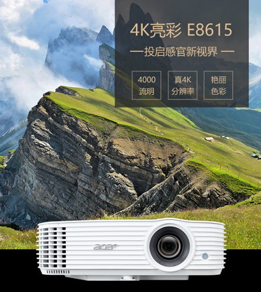 宏碁(Acer)4K投影機E8615,UHD4K分辨率830萬像素畫質(zhì)細膩,4000ANSI高流明智能光感白天直投,不僅支持HDR10
