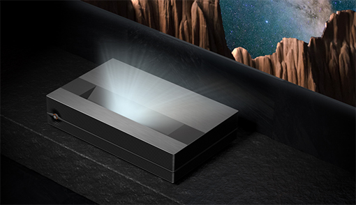 4K激光電視的機器距離墻面17cm就能投出100寸畫面,想要獲得更大的觀影屏幕,只需要調節機器與墻面的距離即可。