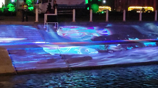 另一部分投影則因地借勢,在海岸邊呈現魚兒嬉戲歡游的廣闊畫面,隨著蔚藍大海的起伏蕩漾,帶來超強的沉浸感。養馬島有神奇的一島三灘景觀,夜晚岸邊的投影秀,也將白日的海岸風光有效地延伸,為休閑度假的人們,提供了更加多樣化、更豐滿的體驗。 |