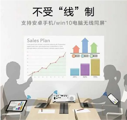 普通的顯示器易受到環境光源反射的影響,反光區域無法使坐在每個角度的人都看清屏幕內容。而投影機則沒有這樣的顧慮,投影畫面無反光,可以讓不同位置的人都能看清投影內容,提高工作及學習的效率。