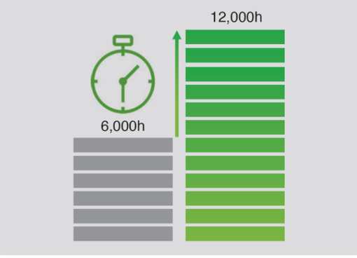 此外,CB-FH52在燈泡壽命上有了顯著提升,環保模式下壽命高達12,000*6小時。假如按每個工作日(按一年250個工作日計算)使用8小時/ECO模式下投影,預計最高可使用長達6年*7。