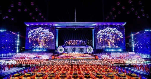 據(jù)了解,春晚觀眾席后方近900平方米的穹幕背景是由18臺(tái)松下50,000流明激光機(jī)PT-SRQ50KC投影打造的。