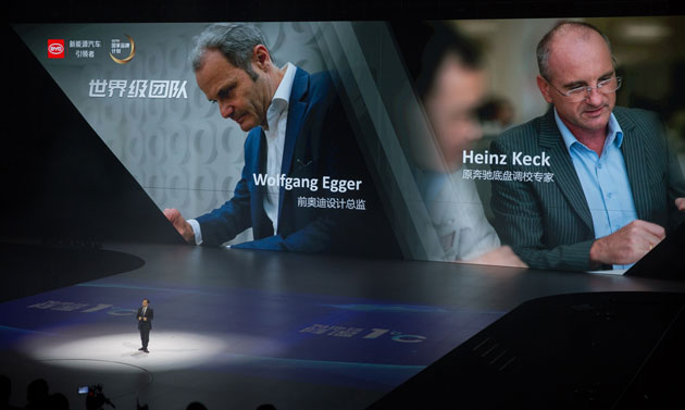 比亞迪品牌之夜活動采用10臺30,000流明的PT-SRZ31KC松下激光工程投影機,投射畫面左右橫跨上海東方體育中心... |