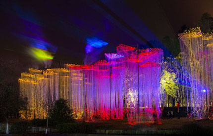 本次燈光節(jié),璀璨炫酷的背后,拼的是創(chuàng)意設(shè)計(jì),拼的是科技實(shí)力,拼的是文化內(nèi)涵,更是設(shè)計(jì)施工團(tuán)隊(duì)的綜合實(shí)力。此次光影藝術(shù)節(jié),“天泉秀、梁祝全息投影秀、映月橋裸眼3D秀”三大主題景觀,直逼世界一流。