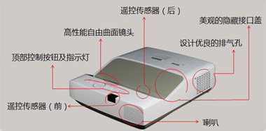 解析反射式超短焦,該機內置一組高性能自由曲面鏡頭,能有效避免魚眼鏡頭出現的圖像桶形失真,技能在短距離內演繹超大畫面和高清晰影像,又能解決普通投影機和普通短焦投影機存在的晃眼、陰影干擾等問題。