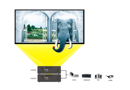 被動式3D教學解決方案由2臺雅圖高亮工程投影機、偏振片及3D眼鏡、視頻融合器等組成。將兩臺投影機畫面用鏡頭位移的方法重疊,再通過投影機自帶的四角梯形校正功能把兩個畫面毫無差別地重合在一起,播放器輸出的3D視頻信號分兩路,分別傳輸?shù)絻膳_疊加的雅圖高亮工程投影機上,實現(xiàn)特殊片源在100寸專用幕布的3D投影,能讓師生享受高清視頻圖像效果,投影機的鏡頭位移及四角校正功能也能使本方案的調(diào)試、安裝更加方便,適合不同的教學場合。