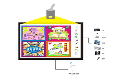 組合式教學互動一體機解決方案(幼教版)集合了電子白板、電腦、超短焦投影、功放、音禹、視頻展臺、中控等多媒體設備功能于一身,只需一根電源線、幾個簡單的按鈕就可以電子授課。本方案即可如傳統(tǒng)黑板那樣自由板書,又提供豐富多彩的教學工具,能夠更生動地展現(xiàn)教材,調(diào)動孩子們的學習興趣。同時它還具有靈活的信息處理能力,不光可以用于展示教學、模擬各種顯示情境,還可以用于拓展教學,幫助幼兒主動探索學習,利于創(chuàng)造才能的發(fā)揮。教師更可以多變換地講解、提問,啟發(fā)幼兒思考,開闊幼兒思維,培養(yǎng)幼兒的創(chuàng)造能力。