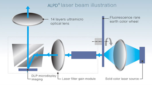 其研發公司深圳光峰光電技術有限公司于2007年發明了該技術,在相關技術研發方面已歷時10年時間,并積累專利就多達1000多項。ALPD技術具有亮度高、壽命長、成本低、尺寸小、能耗低、畫質佳等一系列特點,可謂投影機光源的革新性技術,將有機會再次改變投影行業的現狀。