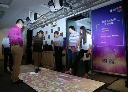 “地面互動”方案應用巴可PFWU-51B,具有1920x1200分辨率,外形時尚,適合不同環境,高穩定性表現降低使用成本,預置的圖像模式使得色彩管理更佳靈活。此外,其還可附加更多的可視化設備,實現更有創意的方案與效果。 |