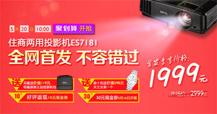 明基ES7181新品投影機近日就將登陸淘寶天貓,而首波限量產品定于2014年5月20日10點準時開搶,市場參考價2999,聚首發專享價僅售1999。最早拔得頭籌的那些買家,還可獲贈價值119的明基原裝正品投影機包,若后續參與好評曬單,還可再獲返現10元的小福利!選投影機還在糾結商用或家用嗎?明基ES7181高性能投影機幫你一網打盡,不管開會用、培訓用,還是看大片、打游戲……有這一臺就夠了。立即搶購http://detail.ju.taobao.com/home.htm?item_id=38907634627&id=10000002786232