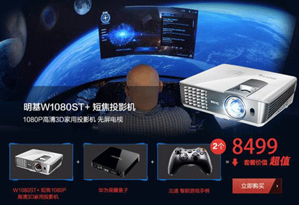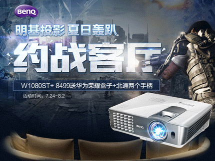 自即日起明基W1080ST+將于京東商城展開限時大促,原價8799特價8499!除直降300以享玩家外,再額外放送兩重好禮,分別為價值298的華為榮耀智能電視機頂盒(真4K超高清/H.265硬解碼/300M全向雙天線設計/接入廣電總局授權播控平臺/正版內容合法提供),以及同樣價值298的2個北通阿修羅TE智能游戲手柄(鏡面黑酷外觀/2.4G無線連接/支持PC、PS3多種游戲平臺和智能系統(tǒng))。一臺游戲短焦投影機外加智能盒子2個手柄,讓你玩樂之余再享無屏電視和海量電影。活動詳情:http://sale.jd.com/act/TgUkNuyEQlodpt.html