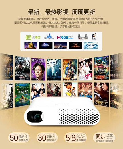 明基i300T鷹眼微投,對于那些熱衷于追劇、喜歡看電影的朋友們來說,算是掌中寶。擁有明基i300T之后,你可以一鍵開機,立刻享受百吋高清畫面,色彩逼真還原,影像細膩動人;得益于內建的智能操作系統,還有無比豐富的明基專屬正版影庫,你可以快速找到想要觀賞的精彩影片,還有周周更新、實時同步的熱播劇集與綜藝視頻。從此以后,無需其它額外的設備,單單一臺明基鷹眼微投,就能給你想看的內容,追劇任性起來就是這么簡單。