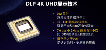 提到4K顯示技術,不得不說的是德州儀器4K顯示芯片,其早已針對數字影院市場推出了1.38英寸4K