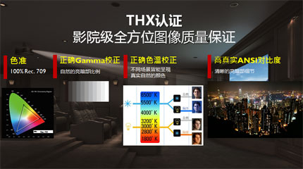 明基新4K家用投影機除提供清晰細膩的畫質之外,在真實色彩還原上依舊下足了功夫。2015年明基推出色準大師系列家用投影機,符合了Rec.709高清色彩標準,將導演所拍攝的電影作品原汁原味的展現給用戶面前,贏得了諸多導演、數字調色師等電影創作人士的認可,明基新4K機種同樣也繼承了色準優勢。同時,明基針對4K家用投影機開發了透光性能更好采用新鍍膜技術的低色散玻璃鏡頭,搭配6倍速RGBRGB純色系色輪,再結合明基色彩調校經驗,帶來真實、細膩的色彩表現,并通過美國ISF認證。。而W11000更是獲得了ISFccc、THX雙重認證,是國內少有的具有雙重專業認證的家用產品。它在符合REC.709色域標準的基礎上,對畫質進行再提升!其中,THX認證是由美國盧卡斯影業公司制定的,為家庭影院所設計技術規范以及為專業視聽器材提供完整品質規格的認證體系,目前僅有4個品牌的投影機獲得過THX認證。而W11000經過了400多項嚴格測試、超過一年的研發,通過了THX對影音器材包括投影機一套相當嚴格而具體的考驗。