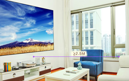 “在家便可以體驗到影院級的觀影效果,這聽著很贊,但一定需要一個足夠大的房間吧?”或許很多人都會有這樣的疑慮,但只要你選擇了明基的家用投影機i920,那么現實就會如理想一樣美好。作為一臺采用了超短焦技術的超投電視,只要客廳深度超過2.5m,那么就可以將主機三維僅有389×133.4×431mm的超投電視主機輕松放在電視柜、書架等合適位置,緊湊戶型,也能夠輕松使用,非常便利。