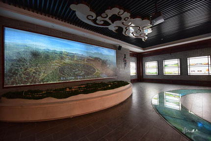 項目應用8臺明基工程高清投影機PU9730,其中4臺單臺投影尺寸為4400×2700mm,總投影尺寸8300×2700mm;2臺投影墻體,2臺投影沙盤。配合片源,對應明顯陵沙盤、明顯陵八大特色、明顯陵風水影片及移步換景;再現明顯陵的數字復原過程。展項中震撼、逼真的風水影片得益于明基工程高清投影機PU9730的優秀性能。此項目充分驗證了明基工程高清投影機PU9730在多種場合的完美應用,是一款為大型場館而生的高性能,高穩定性的工程投影機。