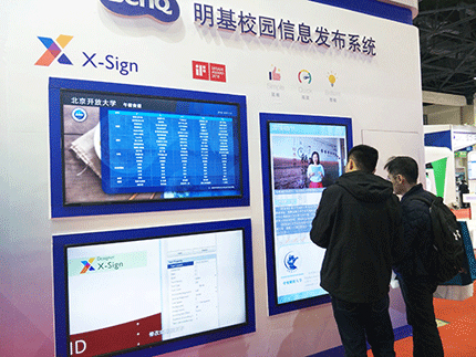 “智慧校園”中實(shí)現(xiàn)。明基展出的“校園風(fēng)采展示”方案呈現(xiàn)了這一想象,方案由智能單屏顯示器ST550K、ST650K和多媒體內(nèi)容管理軟件升級版X-Sign2.0構(gòu)成,軟硬件同步搭配,操作者完全可以快速上手制作并傳播精美訊息。