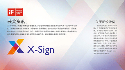X-Sign2.0憑借友好的用戶設(shè)計(jì)以及簡易的操作方式,榮獲全球知名的設(shè)計(jì)界“奧斯卡”獎(jiǎng)項(xiàng)——2018年iF設(shè)計(jì)獎(jiǎng)。