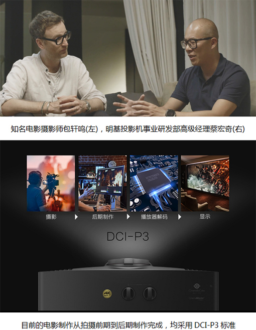 明基投影事業研發部高級經理蔡宏奇表示,明基選擇回歸電影創作的源頭,用DCI-P3廣色域還原導演拍攝和后期制作時的色彩,傳遞給觀眾最真實的感動。