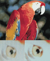 圖6:從鸚鵡眼睛的特寫鏡頭可清楚看出LCD畫面固有的顆粒現象