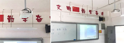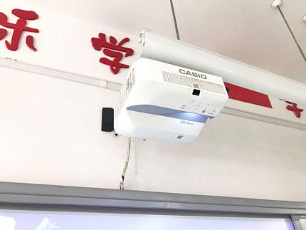 該校所使用的卡西歐XJ-UT255投影機(jī)亮度高達(dá)3100流明,分辨率為1280×800(WXGA),光源壽命長(zhǎng)達(dá)20000小時(shí)。由于是超短焦投影機(jī),所以可以在距離墻壁很近的位置安裝,13cm的距離即能投影出60英寸的畫面,老師不再擔(dān)心身體遮擋而在黑板上留下陰影。具備5秒快速啟動(dòng),支持自動(dòng)梯形校正和光學(xué)變焦,安裝和使用都非常便利。
