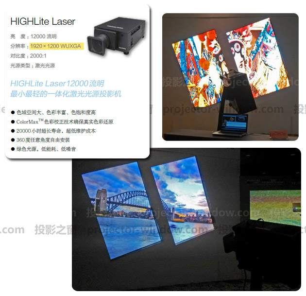 以激光做光源的工程投影機HIGHLite Laser 12k,采用3片DLP技術,分辨率為WUXGA,亮度高達12000流明,遠遠高于此前業界推出的同類別激光光源投影產品的亮度,得益于固態光源技術的優勢,HIGHLite Laser 12k擁有20000小時光源壽命,可以極大降低用戶使用的維護和更換燈泡成本。同時該產品還具備即時開機/關機、任意角度安裝等優異工程特性,是創意型顯示系統的最佳產品選擇。據悉,DP這款激光產品自上市以來,深受市場關注,并已經取得不錯的成績。DP希望通過這一新產品令激光光源在工程領域的應用得以大大拓展。
