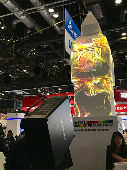 10K提供的豎向投射方案。整個(gè)展會(huì),DP全部以激光光源的投影產(chǎn)品亮相,涵蓋了單片DLP和3片DLP,多梯度的亮度選擇和分辨率選擇,為不同場(chǎng)所、不同領(lǐng)域的應(yīng)用,提供了細(xì)分化的產(chǎn)品。真實(shí)自然的顯示畫(huà)面,帶給觀眾身臨其境的體驗(yàn)。