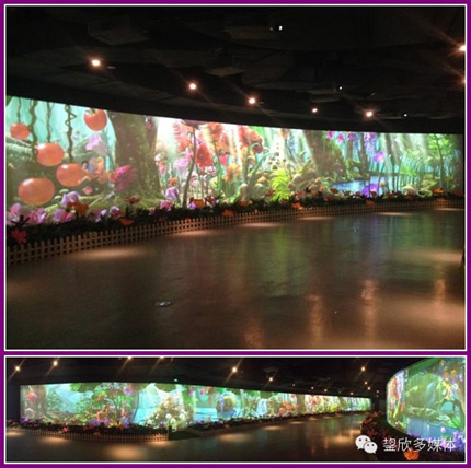 方案特點(diǎn):采用拼接融合,聲光像及機(jī)電設(shè)備的同步控制