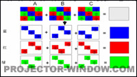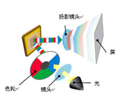 為了解不同技術的投影機對于以上測量方法的不同表現(xiàn),我們需要先了解一下3LCD技術和單片DLP技術的成像原理。3LCD技術的成像原理(圖2)同我們常見的顯示器,電視,數(shù)碼相機的彩色成像設備一樣,都采用了3色成像原理,即采用紅,綠,藍三原色合成色彩。并且目前來自所有的視頻,DVD,HD,數(shù)碼相機以及計算機信號等都以RGB色彩范圍解析。根據(jù)楊-赫姆霍爾茲的三色學說,紅,綠,藍三原色可以混合合成所有不同色彩,這同人眼的視覺特性有關。