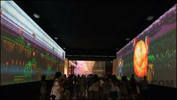 | 觀眾佇足欣賞清晰、有趣的游戲畫面 |